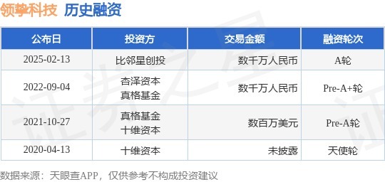 证券之星消息,根据天眼查APP于2月13日公布的信息整理,杭州领挚科技有限公司A轮融资,融资额数千万人民币,参与投资的机构包括比邻星创投。